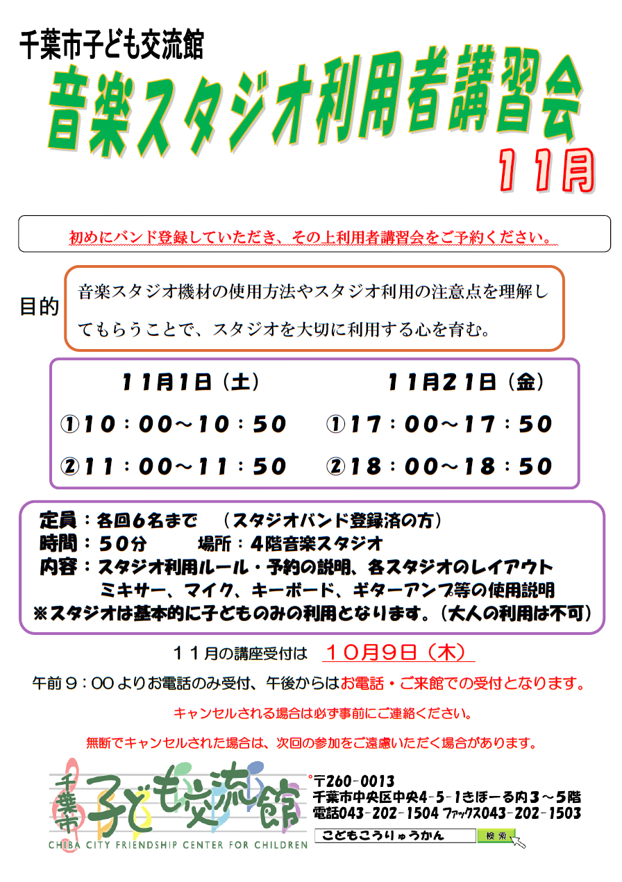 2025年11月音楽スタジオ利用者講習会チラシPDF(152kb)