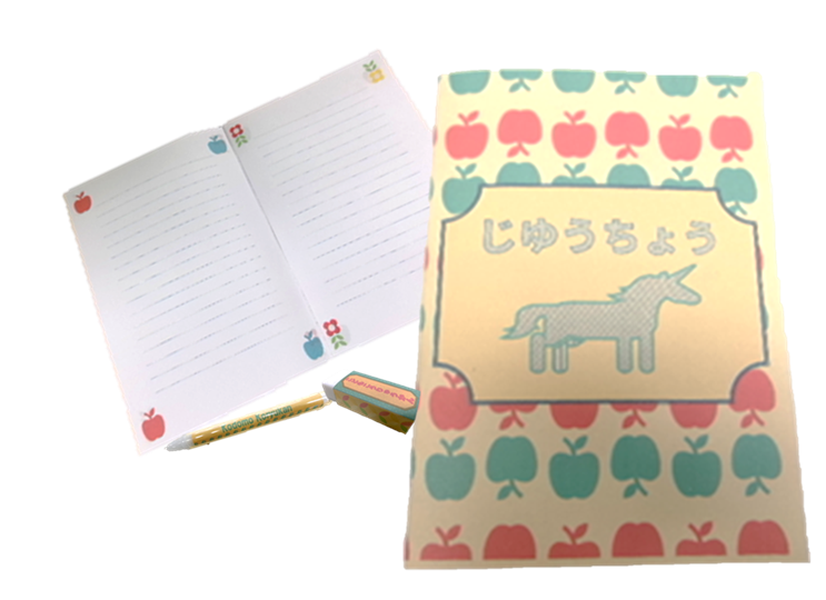 A5サイズのノート・シャープペン・消しゴムのセットです。