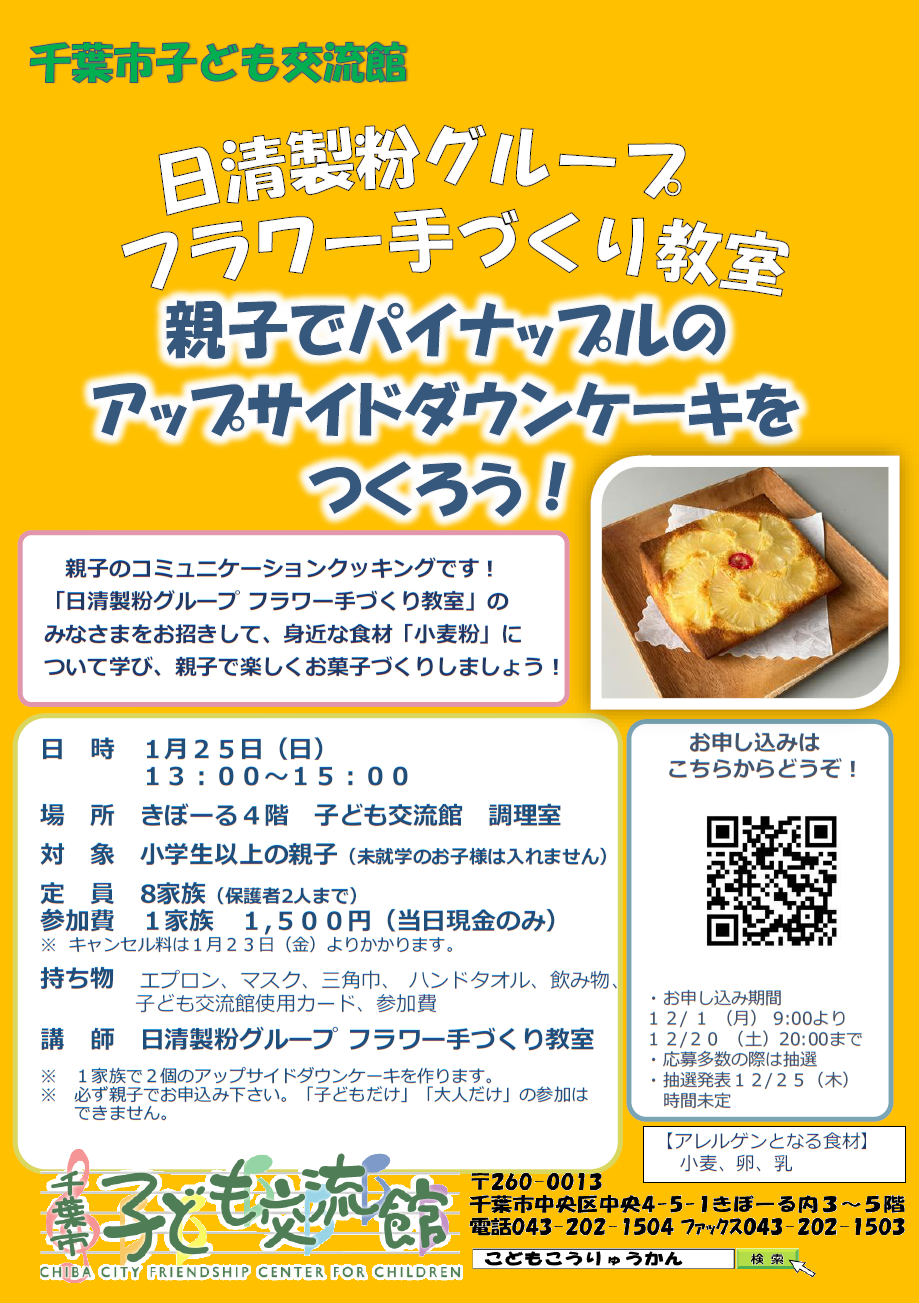 日清製粉グループ フラワー手づくり教室「親子でパイナップルの アップサイドダウンケーキを つくろう!」(事前申し込み)