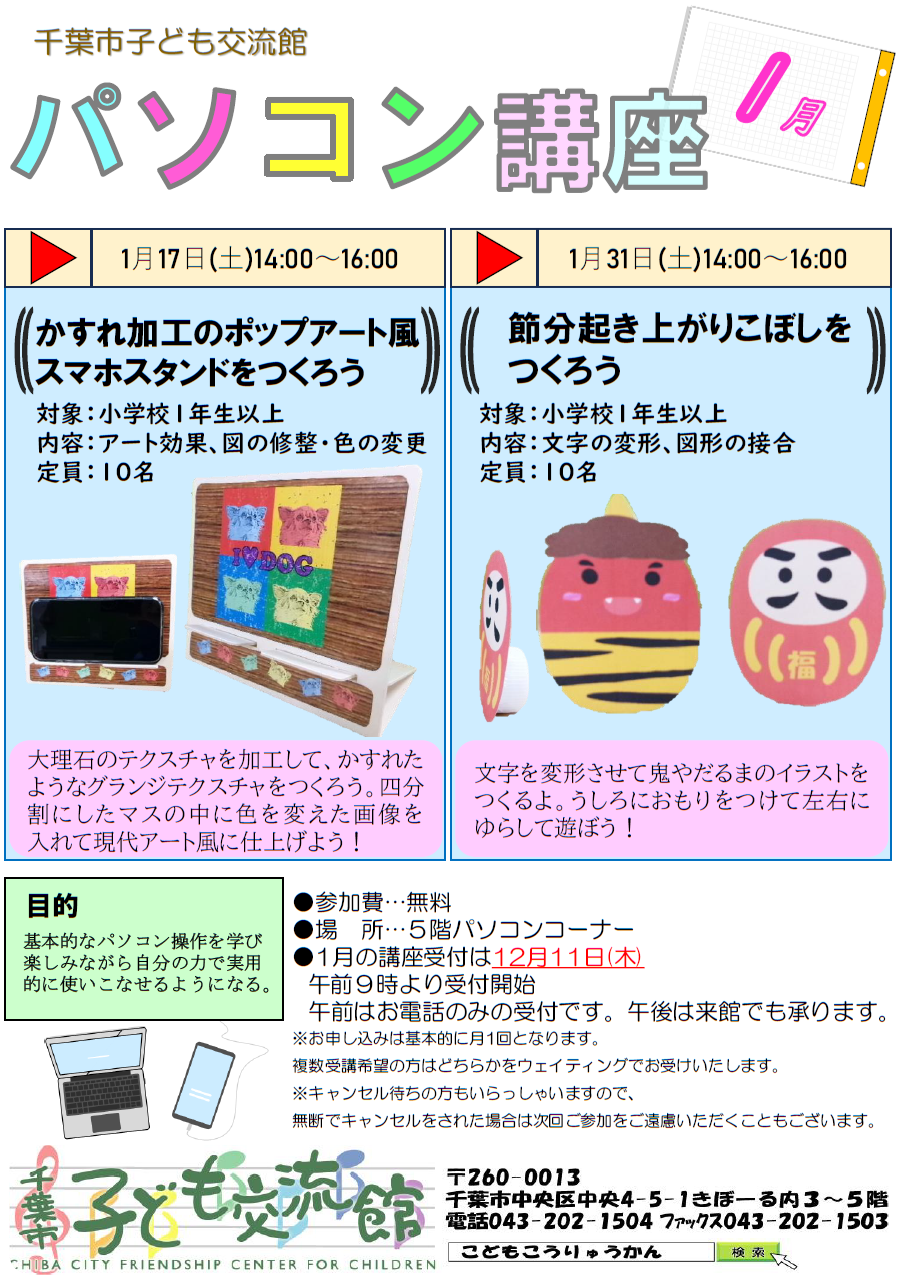 パソコン講座「節分起き上がりこぼしをつくろう」【2時間コース】(事前申し込み)