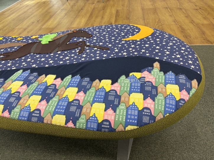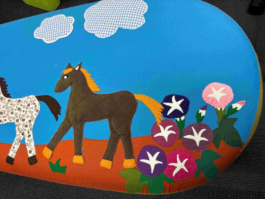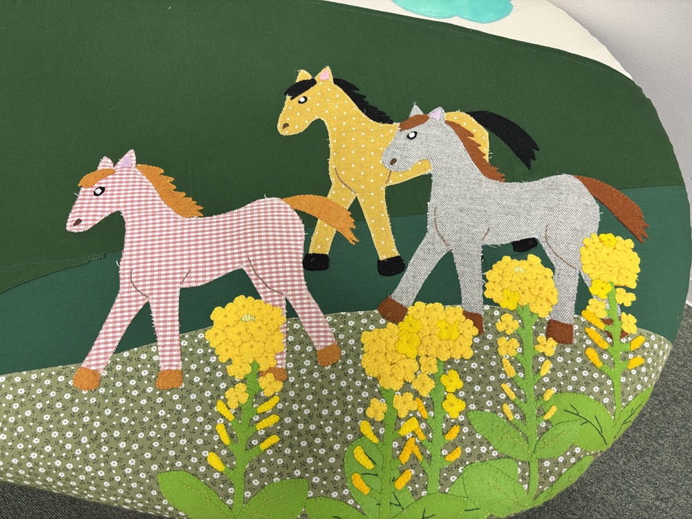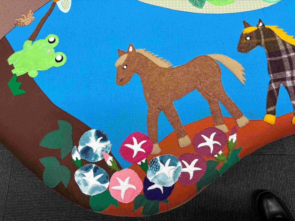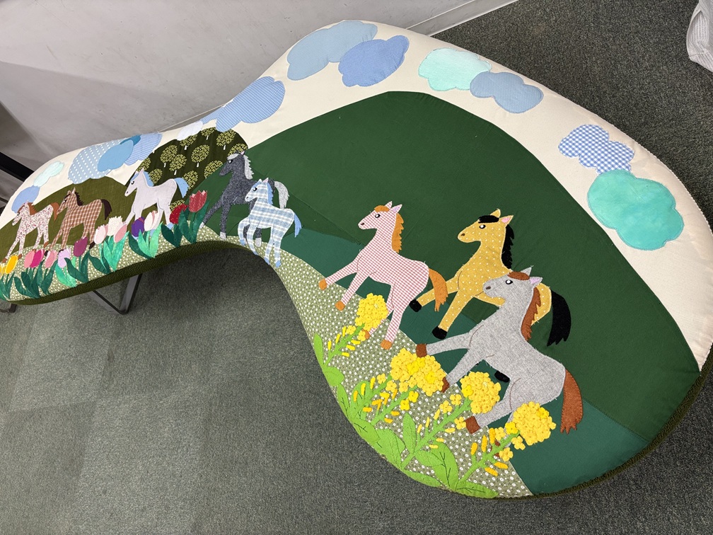 このパッチワークは受付スタッフがアイディアと端切れの生地を持ち寄って、