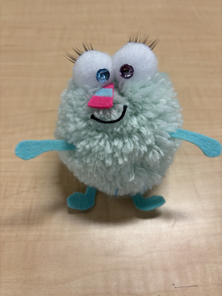 毛糸のポンポンを使って子ども交流館のプレイルームにいるキャラクターを作ります。