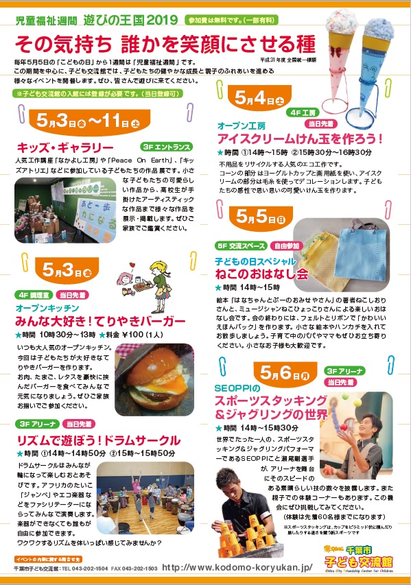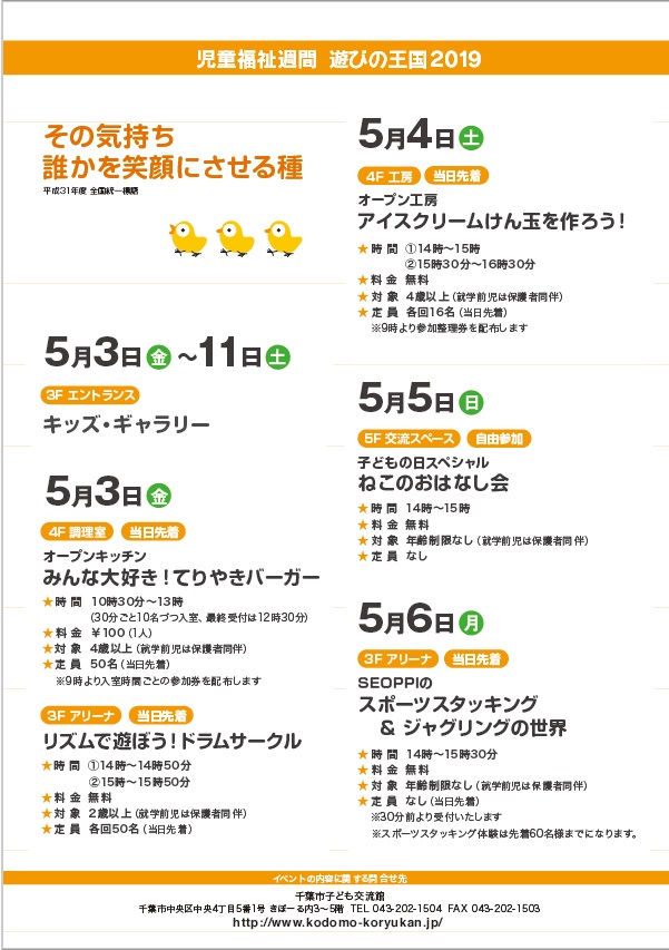 5月3日(金)~11日(土) 児童福祉週間「遊びの王国2019」!
