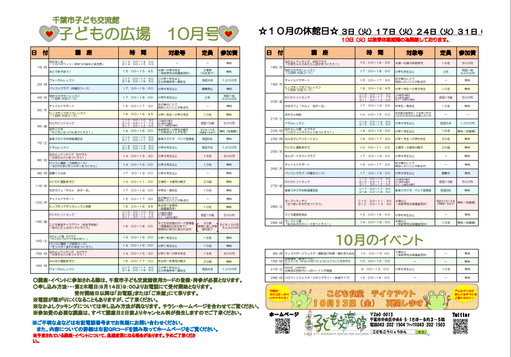 2023年10月千葉市子ども交流館情報誌 PDF(482kb)