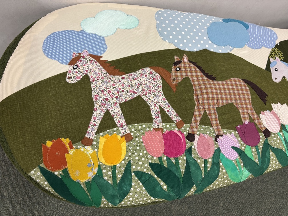 この長椅子の「干支」パッチワーク。