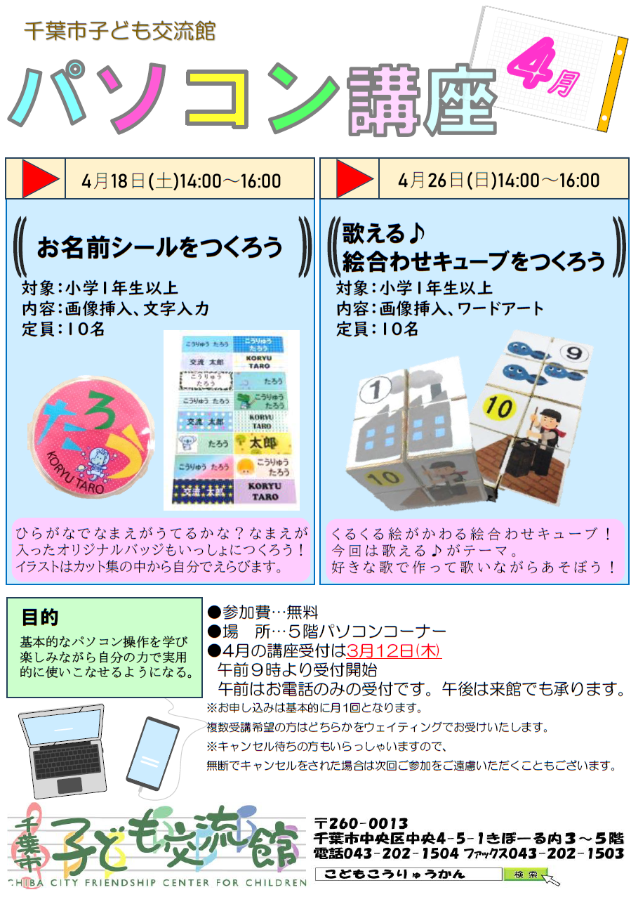 パソコン講座「お名前シールをつくろう」【2時間コース】(事前申し込み)