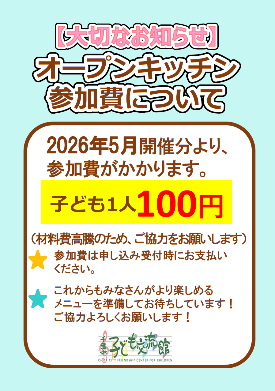 【お知らせ】5月から「オープンキッチン」が有料になります