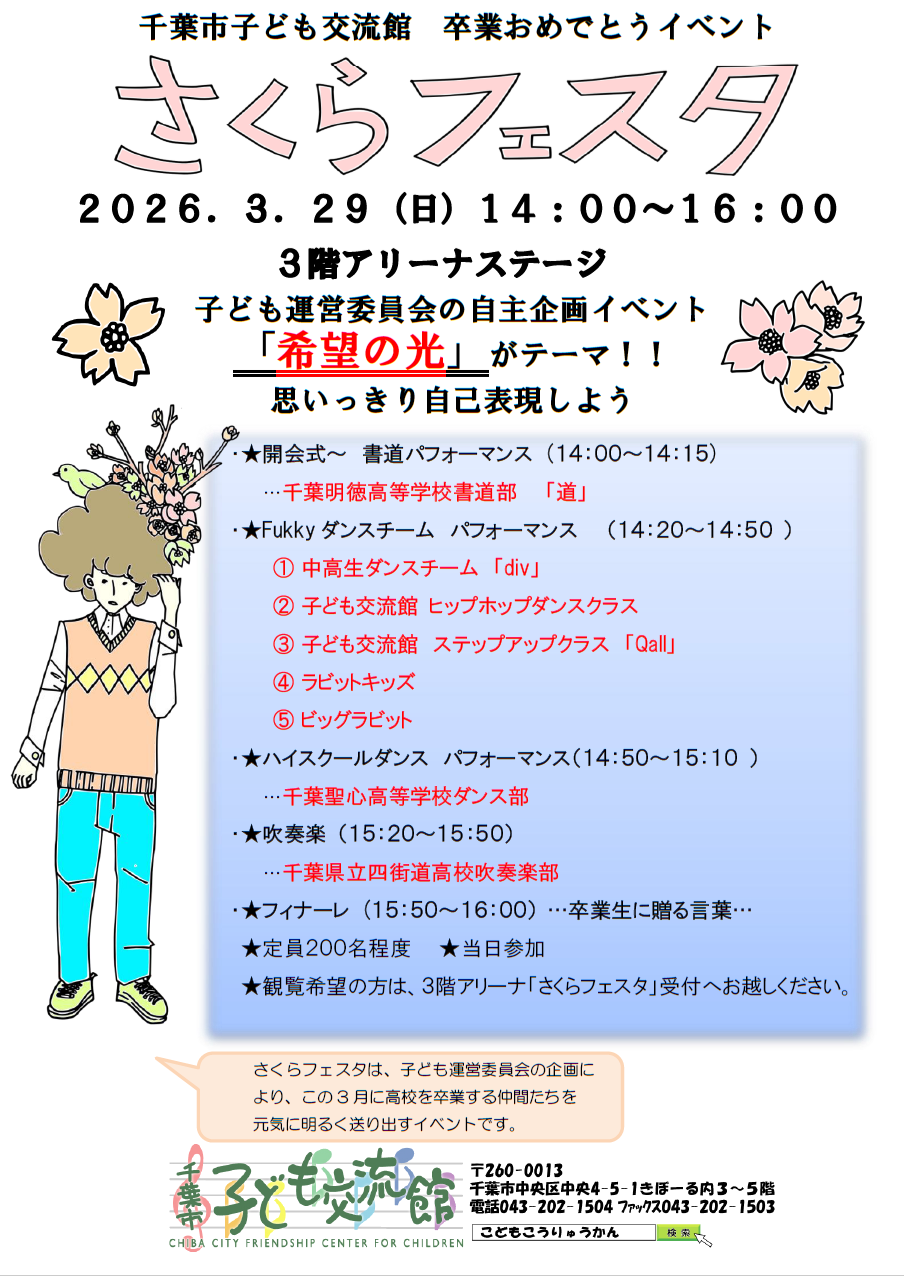 トップページ > イベント・講座 > 「さくらフェスタ」3月に卒業する子どもたちを応援する自主企画イベント!(当日参加)
