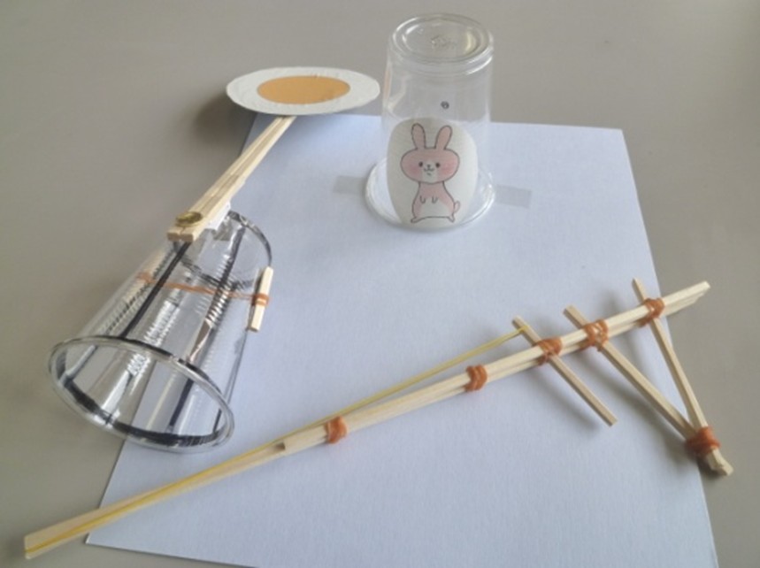 輪ゴム鉄砲や、ゴムで飛ぶおもちゃを作ります。
