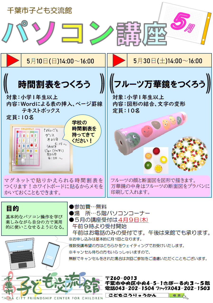 パソコン講座「時間割表をつくろう」【2時間コース】(事前申し込み)