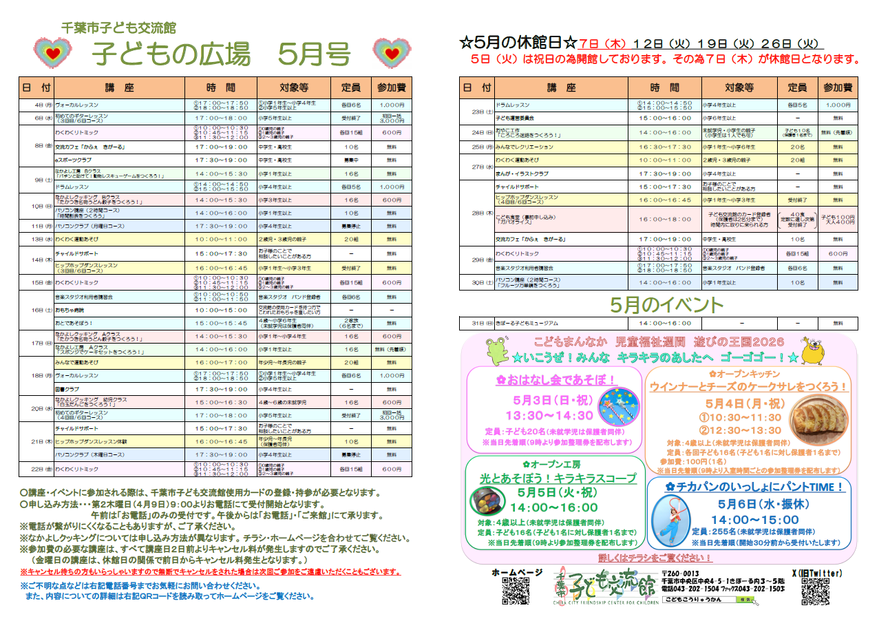 5月開催予定の講座・イベント情報をUPいたしました。(4/1)